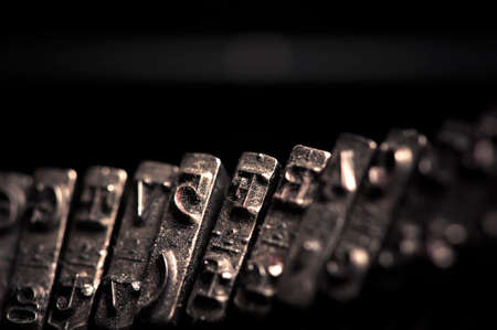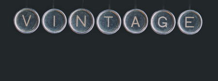 Vintage word made with printer keys on the black background. Horizontal studio shot.