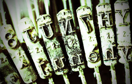 Close up of keys on an old vintage type writer. Retro filter applied.