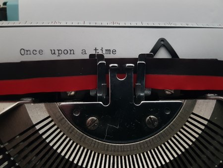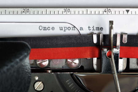 ONCE UPON A TIME typed words on a vintage typewriter. Close up. Antique Typewriter.