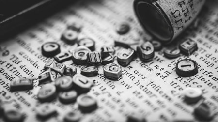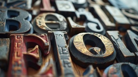 A close up of a bunch of old type letters on top of each other, AI