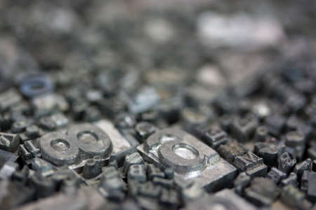 Close up of old used metal typeset letters
