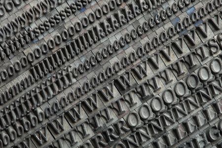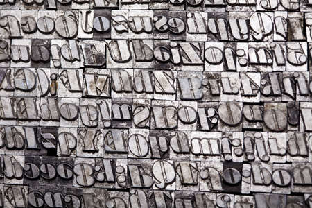 Random arrangement of letterpress lead letters in block