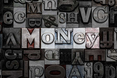 The word Money made from old metal letterpress letters