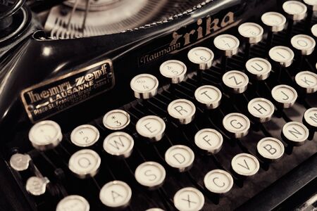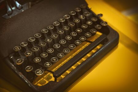 Old typewriter in antique photography vintage simulated. Close up at keyboard