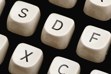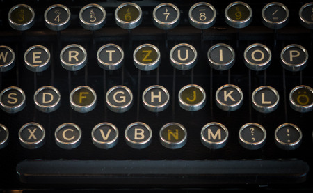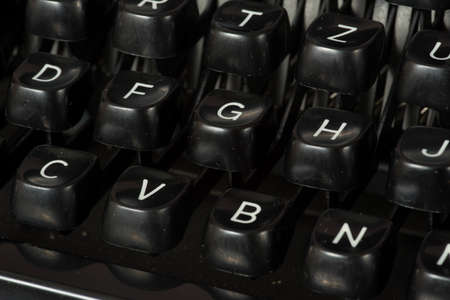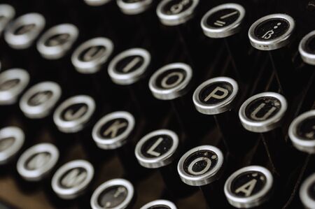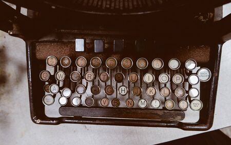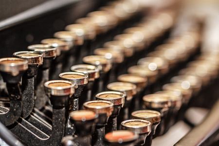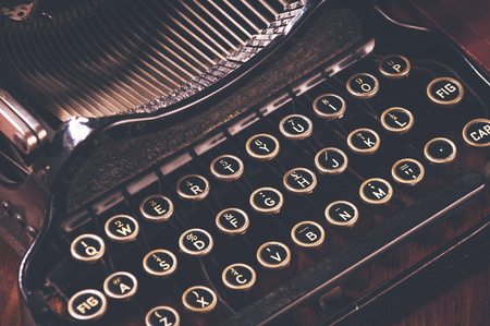 Close up of lettered keys on an old typewriter. Shallow depth of field. Vintage filter applied.
