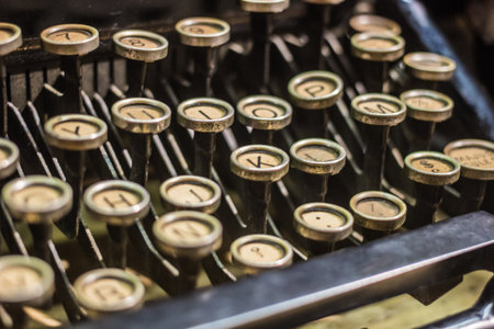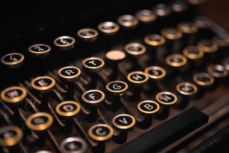 A close-up shot of vintage typewriter keys, highlighting their classic and nostalgic design, representing history, writing, and traditional communication tools.