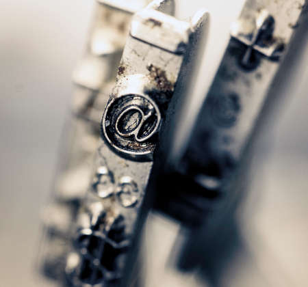 Typewriter Metal Types Photo Background. Typing Elements Macro Photo.