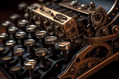 Generative AI Closeup shot of types and mechanism of retro typewriter