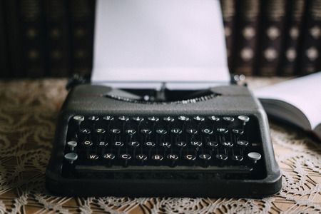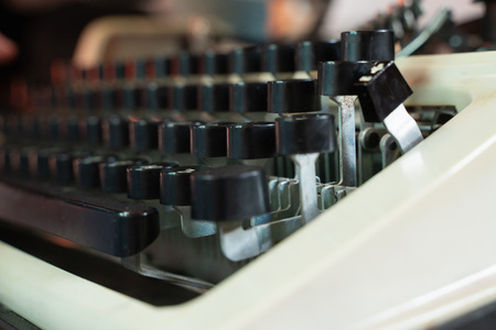 Vintage typewriter closeup, selective focus, shallow depth of field