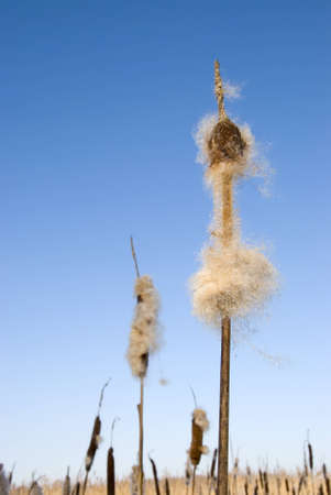 Typha angustifolia seeds on tree.