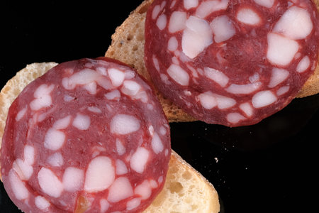 fast snack with delicacy with slice salami