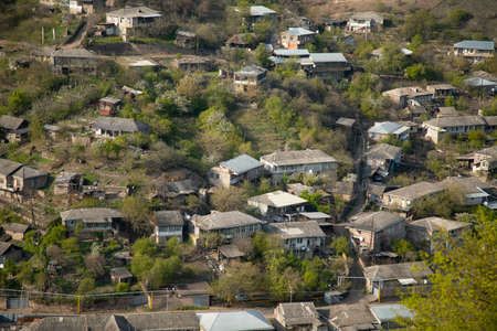 Small vilage with different buildings and green trees