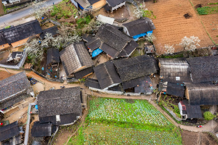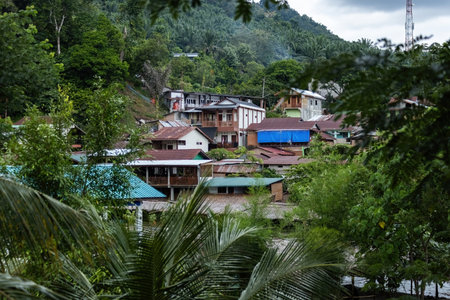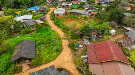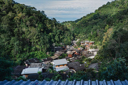Rustic traditional village on hillside of local community in the valley on countryside at Ban Na Lao Mai, Chiang Dao, Chiang Mai, Thailand
