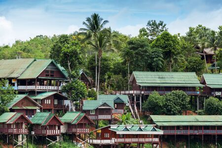Wooden houses on a hill in Sangkhlaburi, Thailand