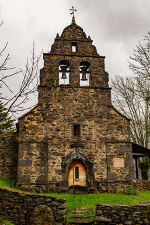 Traditional village in Spain with antique church, Cangas Narcea