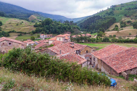 Picturesque rural traditional mountain village in Asturias. Asiegu, Spain