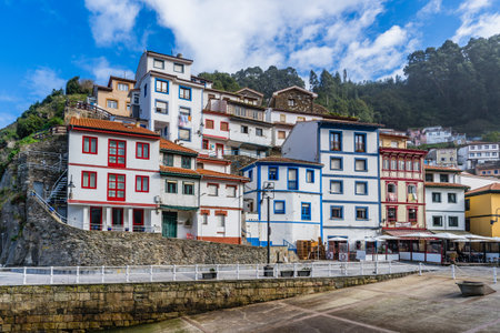 CUDILLERO, SPAIN - OCTOBER 19, 2019: Coastal town of Cudillero with terraced houses, fishing village and tourist destination