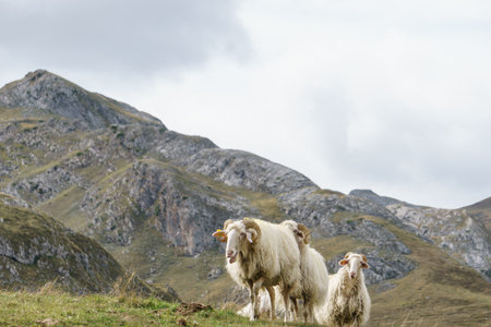 White sheep in the pyrenees mountains, Nouvelle-Aquitaine, France