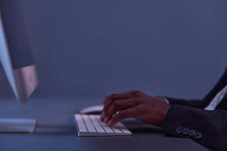 corporate man online work night lifestyle freelancer keyboard african technology business american