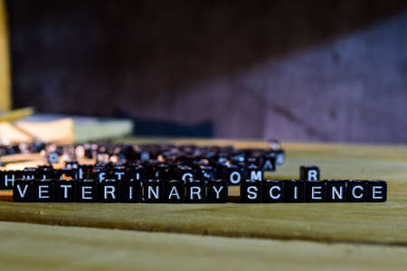 VETERINARY SCIENCE concept wooden blocks on the table. With personal development, education and motivation concept on blurred background