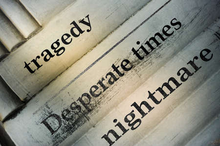 Distressed newspaper headline tragedy desperate times nightmare uk