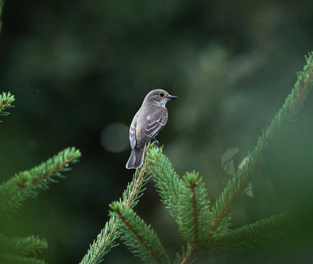 Spotted Flycatcher (Muscicapa striata) on branch in summer, Podlaskie Voivodeship, Poland, Europe