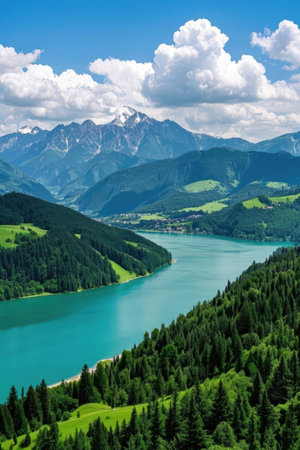Panoramic view of a beautiful alpine lake in Austria.