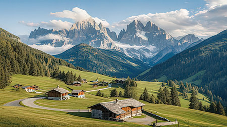 Panoramic view of the Dolomites in summer, Italy