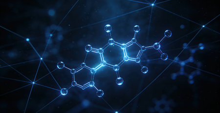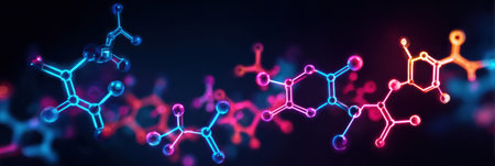 Molecular structures glow in bright colors above a dark canvas, illustrating the complexity of chemistry and the beauty of scientific discovery.