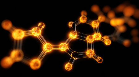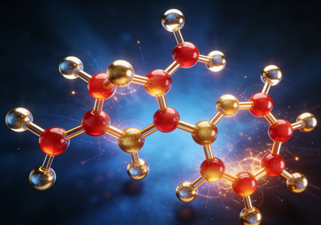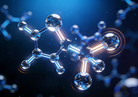 Glowing molecular structure emphasizes the beauty of chemistry, showing how atoms connect in an energetic display relevant to scientific studies.