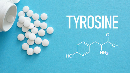 Tyrosine Amino Acid Supplement Concept for Cognitive Support Focus and Stress Response with Clean Nutrition Background and Copy Space