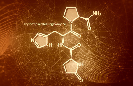 Chemical formula of thyrotropin-releasing hormone. Infographics illustration.