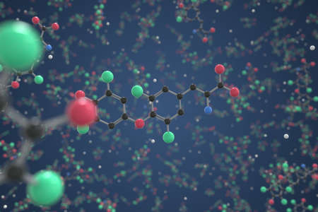 Molecule of Levothyroxine. Molecular model, science related 3d rendering
