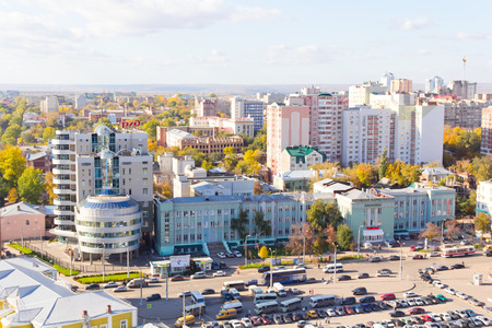 Ufa, Russia, 12 June, 2019: top view on the panorama of city - Ufa Russia.