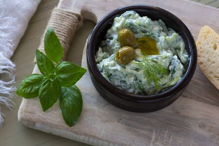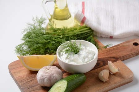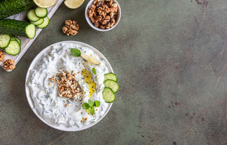 Zajiki-Dip sauce made from fresh cucumbers, yogurt and garlic. A traditional dish of Greek cuisine.
