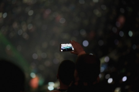 Making video recordings and pics on a smartphone at the concert or light show for publishing on social media.