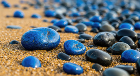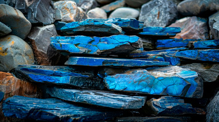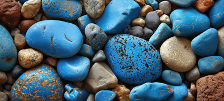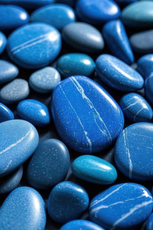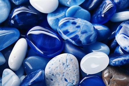Close-up view of a collection of vibrant blue stones, showcasing diverse textures and sizes. perfect for backgrounds, design projects, and decorative purposes. highlights natural beauty and rich color. Generative AI