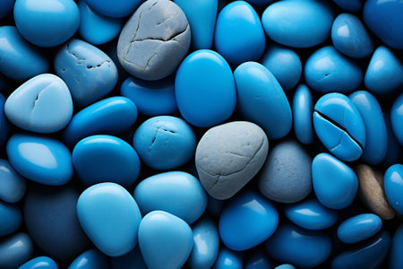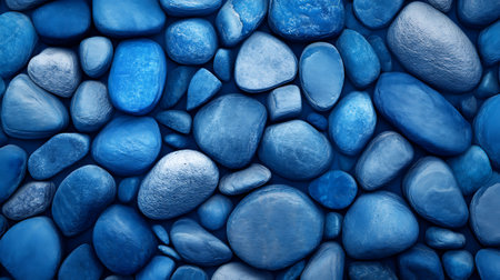 A stunning collection of smooth, polished pebbles in various shades of blue, creating a captivating and serene natural pattern