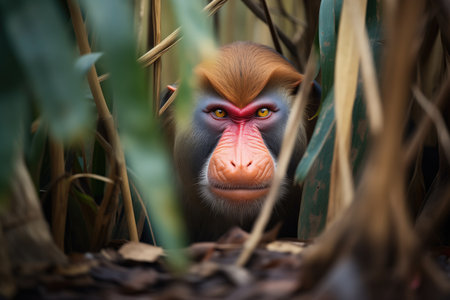 Portrait of mandrill isolated on natural defocused background. Amazing Wildlife. Generative Ai