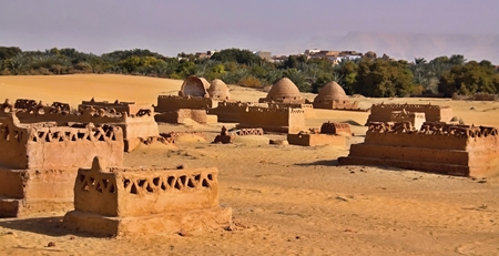 Panoramic View to the Colorful Nubian Village on the Egyptian Island near Nile River, Egypt