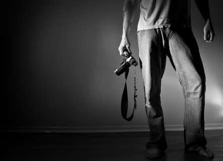Male detective with photo camera, crime scene