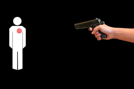 Man pointing a gun at the target on dark background