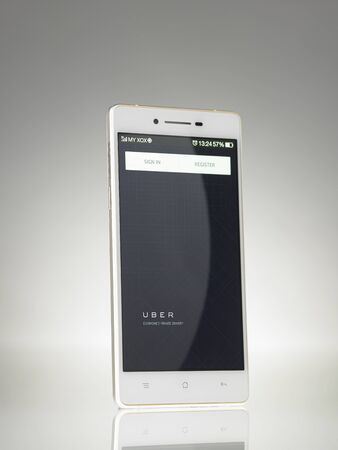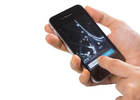 KUALA LUMPUR, MALAYSIA - FEBRUARY 5TH 2015. Headquartered in San Francisco, USA, Uber is smartphone app-based transportation network and taxi company operating in 53 countries around the world.