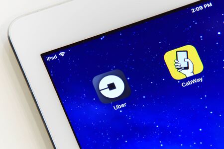 New york, USA - February 02, 2018: Uber and CabWay application icons on iPad screen.