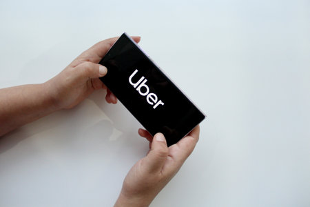 KONSKIE, POLAND - SEPTEMBER 29, 2018: Uber on smartphone