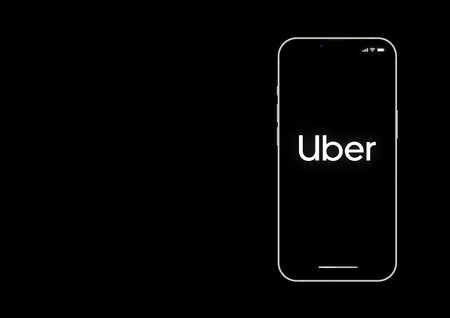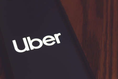 Uber logo seen on the smartphone closeup