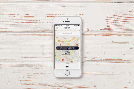WROCLAW, POLAND - APRIL 12, 2016: Apple iPhone SE smartphone with Uber app on screen