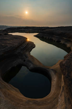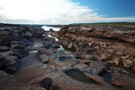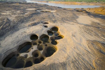 Three thousand waving the rocks beneath the Mekong river. Caused by the vortex erosion. A pool of more than 3,000 wells and is visible during the dry season the water dry up.Ubon Ratchathani,Thailand