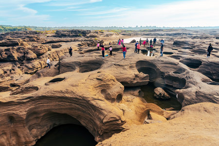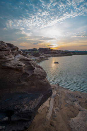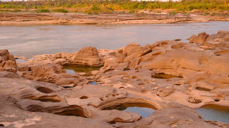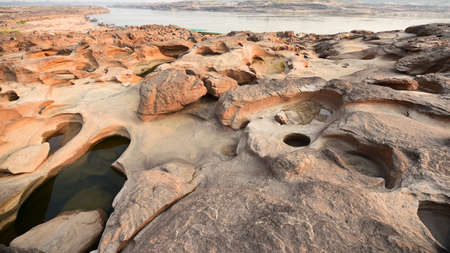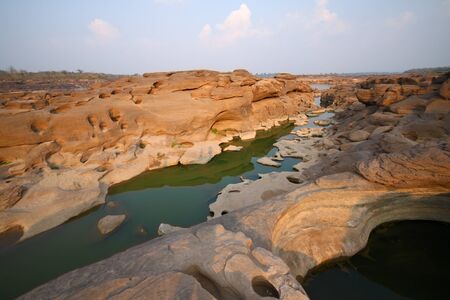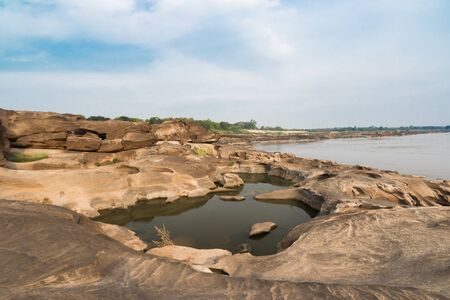 Sam Pun Bok Three thousand waving the rocks beneath the Mekong river. Natural sandstone group Eroded through time for thousands of years. Thailand grand canyon in Ubon Ratchathani.