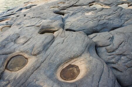 Three thousand waving the rocks beneath the Mekong river. Caused by the vortex erosion. A pool of more than 3,000 wells and is visible during the dry season the water dry up.Ubon Ratchathani,Thailandiver. Caused by the vortex erosion. A pool of more than